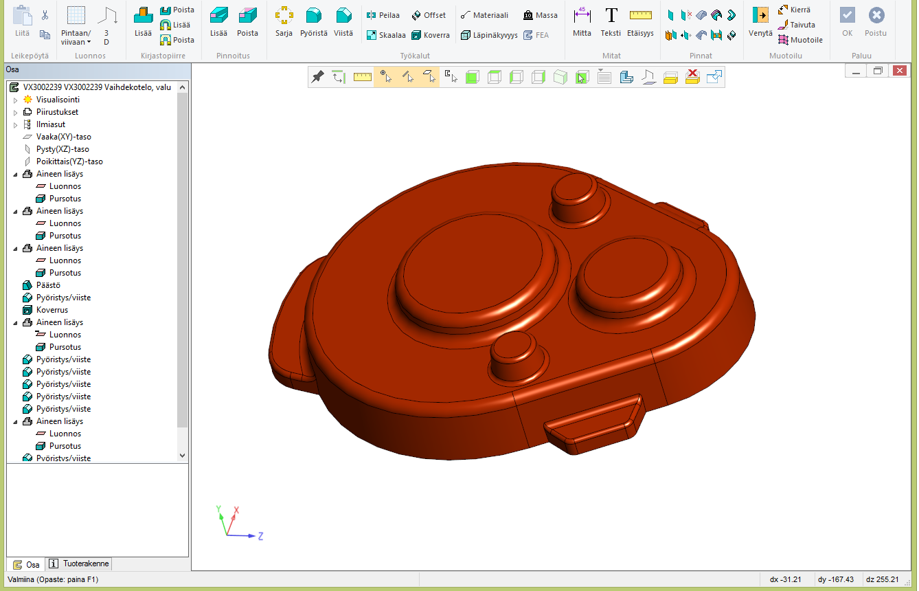 Kuva 5: Koneistavan osan ominaisuuksia.