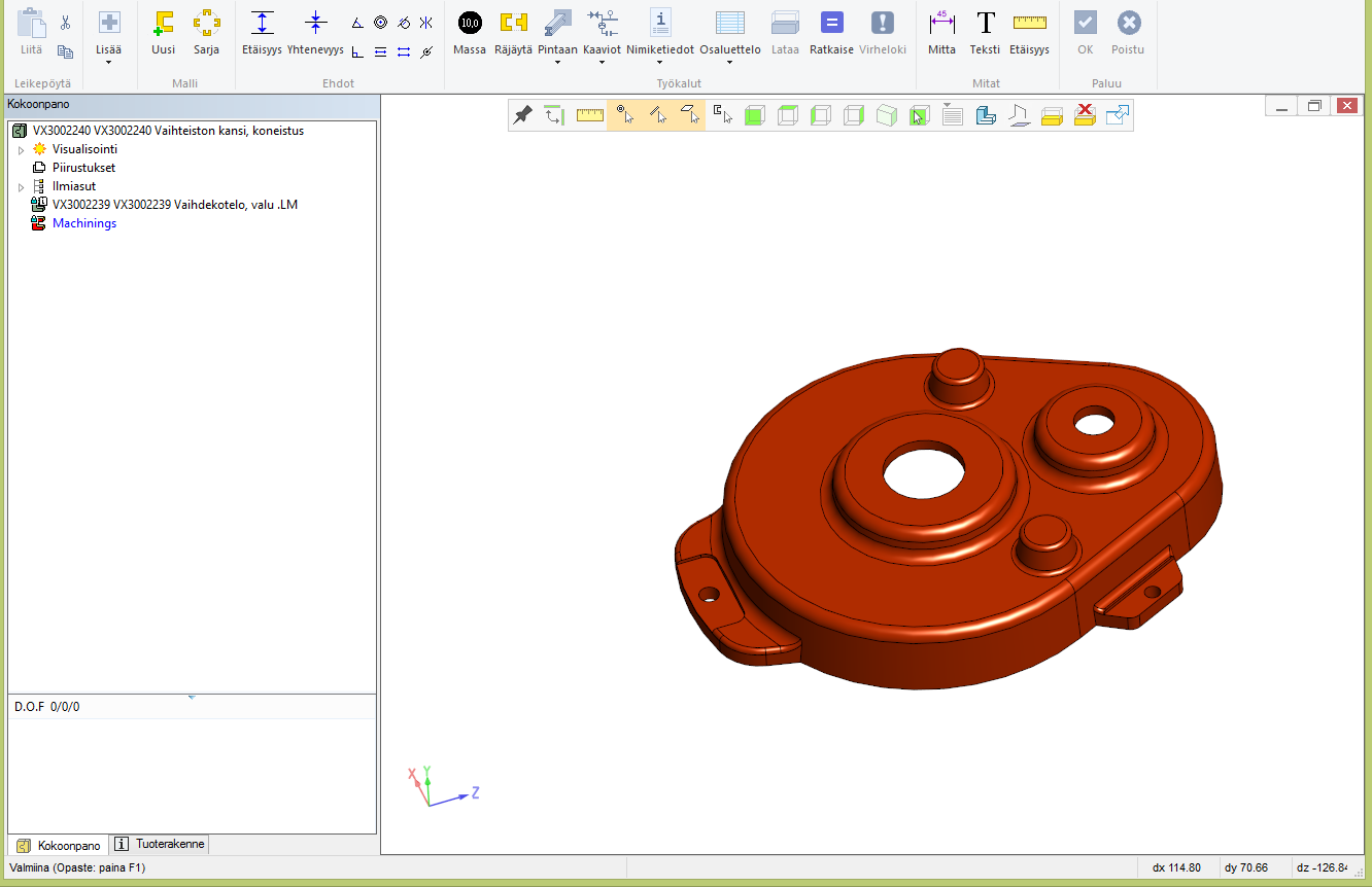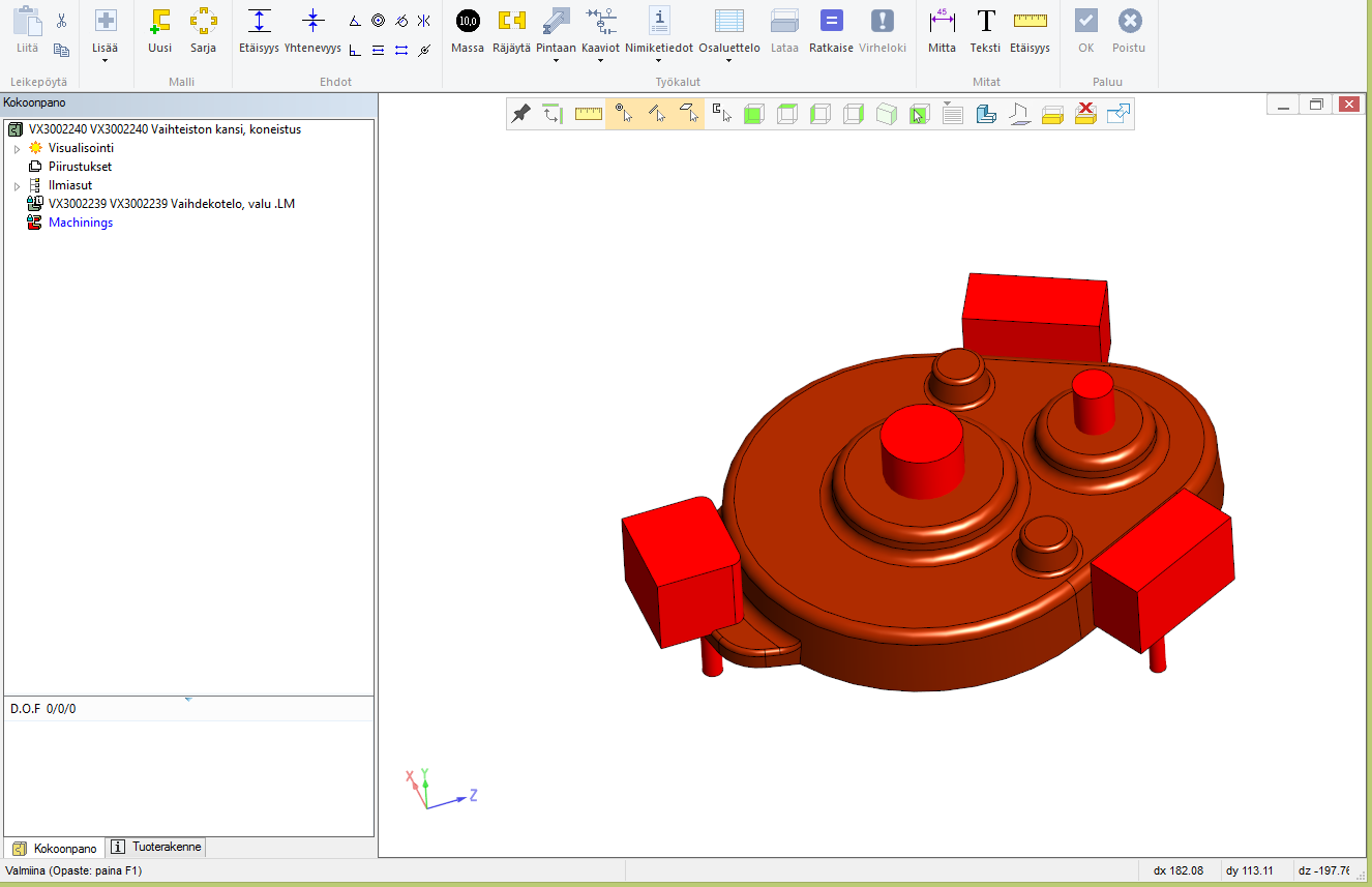 Kuva 4: Koneistukset kokoonpanossa. "M"- näppäimellä voit asettaa työkalu- tyyppiset osat näkyviin ja pois näkyvistä.
