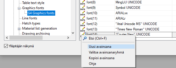 - Valitse avainsanaryhmä draft / Graphics fonts / G4 Graphics fonts