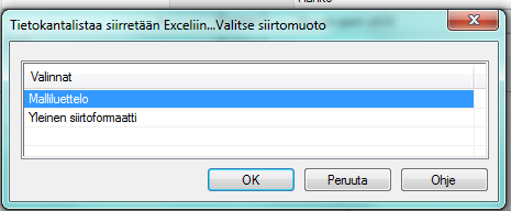 Avainsanat: mallit, malliarkisto, Excel, vienti Exceliin