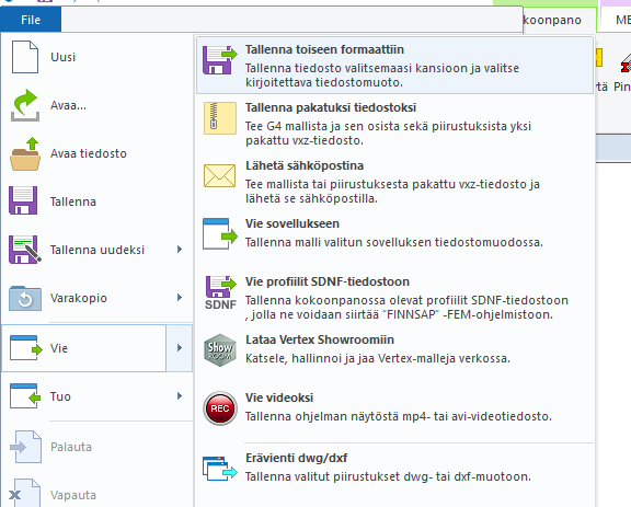 Tallenna tämän jälkeen malli STEP-formaattiin joko normaalina tai kevyenä mallina.