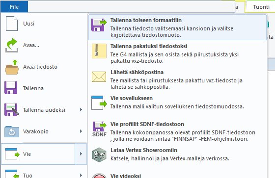Tallenna malli "Tiedosto - Vie - Tallenna toiseen formaattiin"