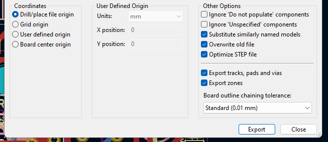 Toiminto löytyy piirilevyn puolelta Export- Step-kohdassa