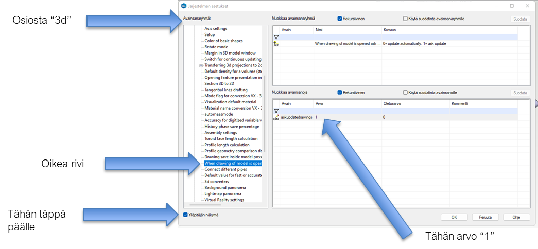 Piirustusta avattaessa ohjelma kysyy päivitetäänkö piirustus (kyllä tai ei)