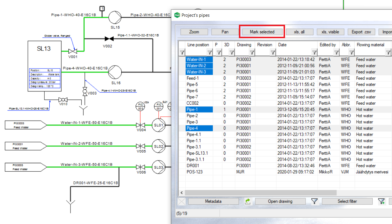 It's now possible to select multiple lines from PI database and mark them to the diagram. (PLANT-3834)