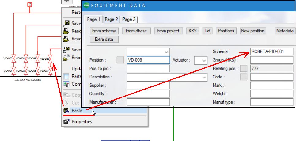 Cutting and pasting symbols from one diagram to another will now connect these symbols to the new drawing in the databases as well. Previously cutted symbols were referring to the orginal drawing unless the user updated the data manually. (PLANT-3844)