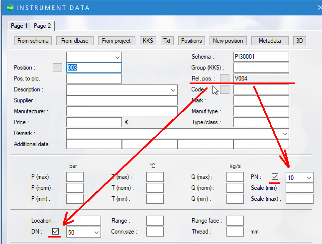 For valves it has been possible to prevent updating DN and PN values from connecting position. Same functionality is now added to instruments. If checked, PN and DN fields are not copied from connecting position attributes. (PLANT-3501)