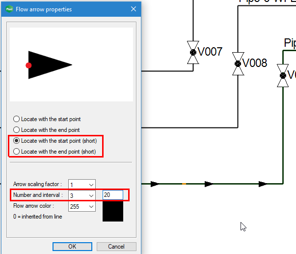 You can now select a short flow arrow. Additionally, you can add N pieces of arrows to a straight line at defined intervals. (PLANT-3407)
