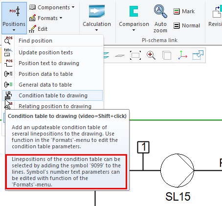 The condition table reference symbol's parameters are now configurable. As with other position texts, you can set the values you want. Numeric text is also scaled automatically if the reference symbol 9099 is added as scaled. (PLANT-3322)