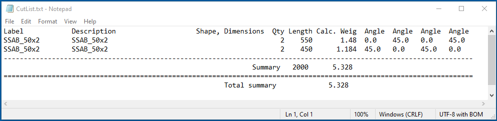 To print a cutting list from the profiles in the assembly to a text file, follow these steps: