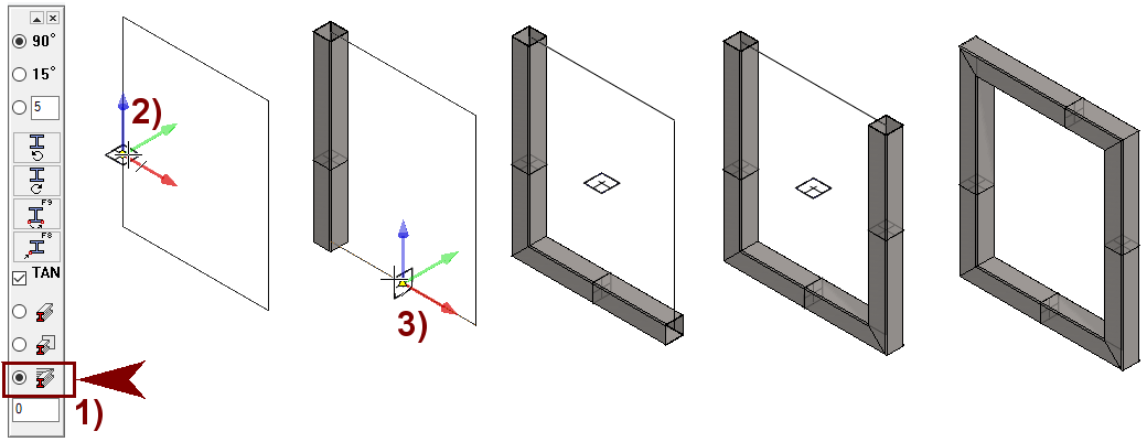Use of the control curve part (skeleton / jig) in modeling profile structures.