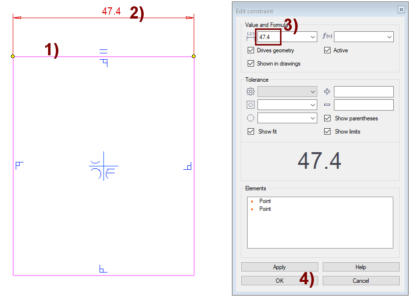 Sketching: Coincident constraint