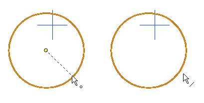 Note the position of the cursor when selecting the circle or its center point