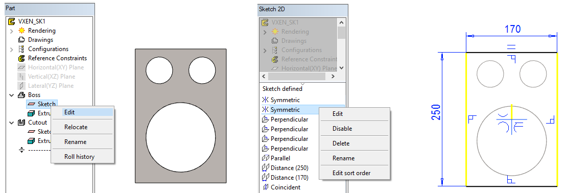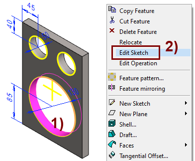 Right-click function: Edit Sketch, in the figure 2).