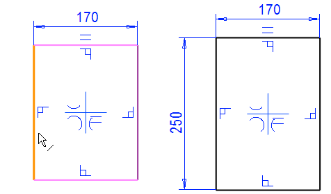 Click the line to be dimensioned, in the figure 1).