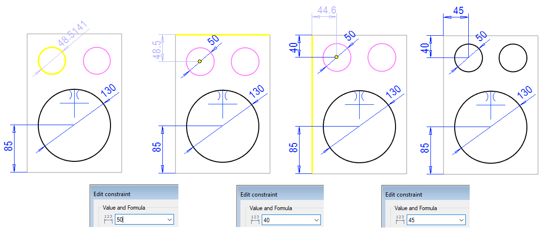 The program adds automatically constraints that limit the behavior of the geometry.