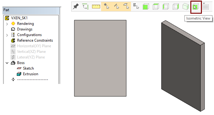 If you have sketched a shape that does not have open shape line ends, the program always suggests the Boss extrusion.