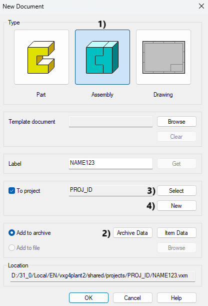 Select the document type as Assembly.