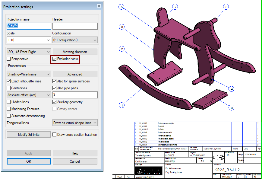 Note: Explode stations are not defined in the example model for the saddle assembly (VX_AS10-A5).