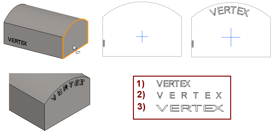 Add curved text to the end face of part