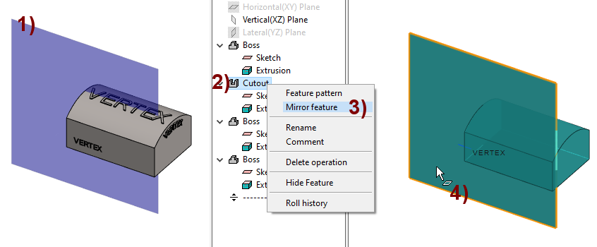 Right-click function: Feature Mirroring, in the figure 3).