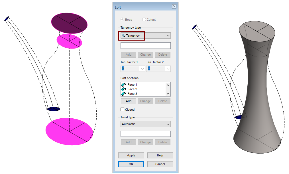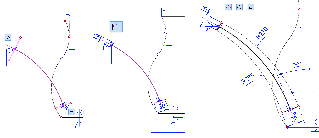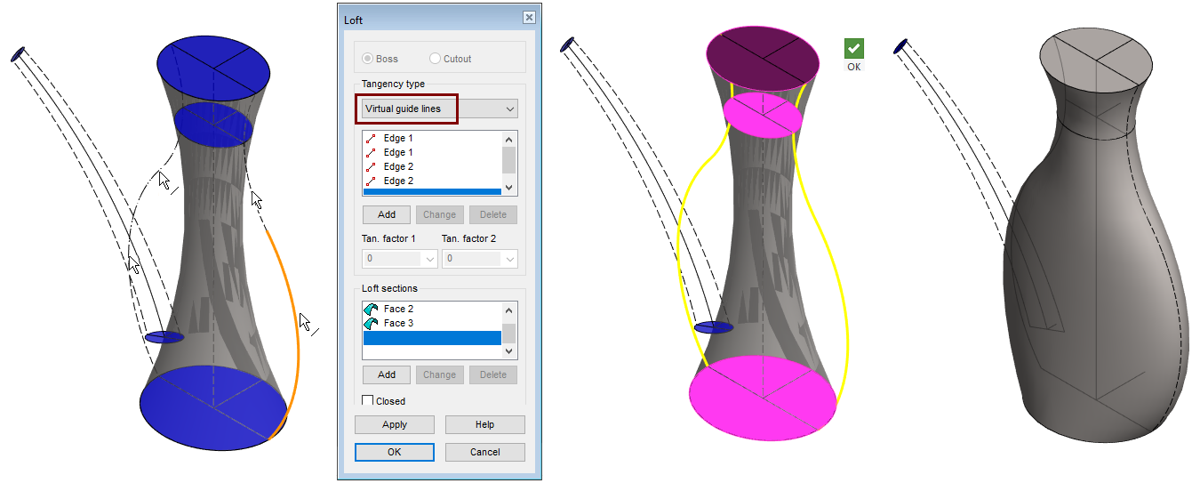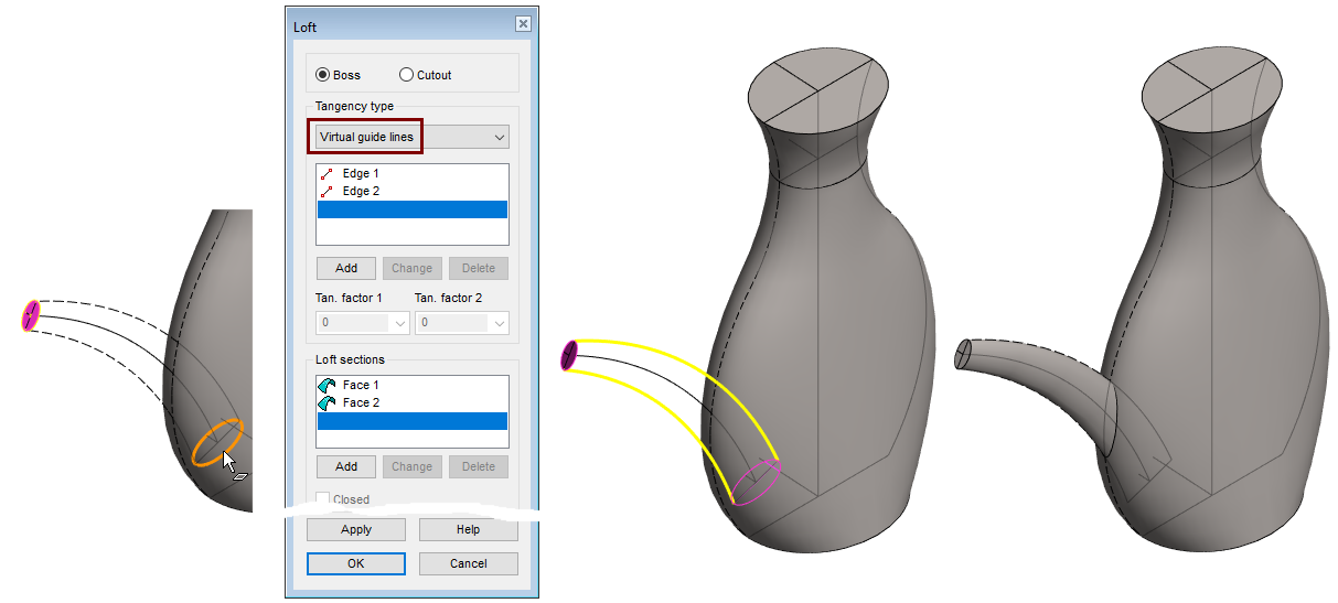 Change tangency type: Virtual guide lines.