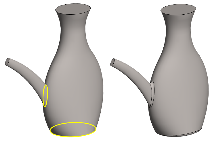 Add rounding between the nozzle and the body and to the bottom of the watering can.