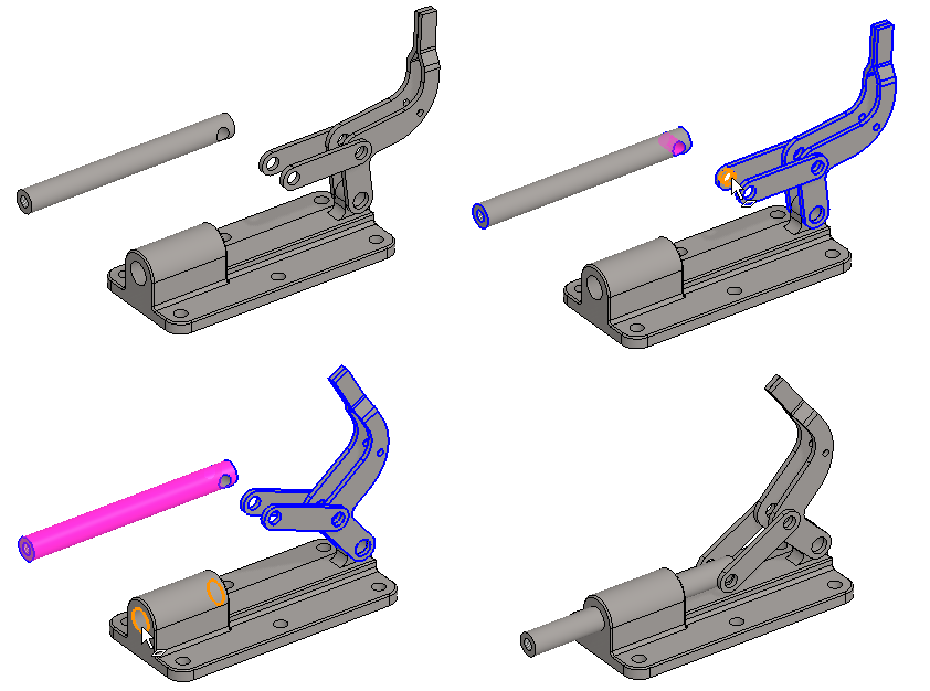 Add the concentricity constraint between the lever and the loop eye, in the figure C).