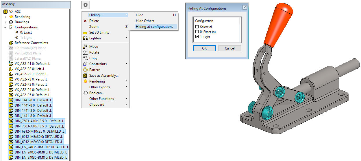 Right-click function: Hiding > Hiding at configurations.