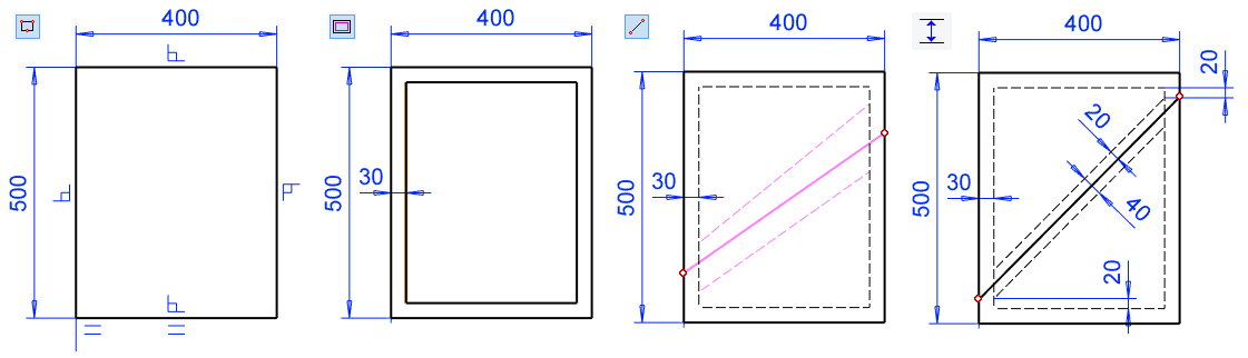Sketching: Two-point rectangle, Offset line, two point line and dimensioning.