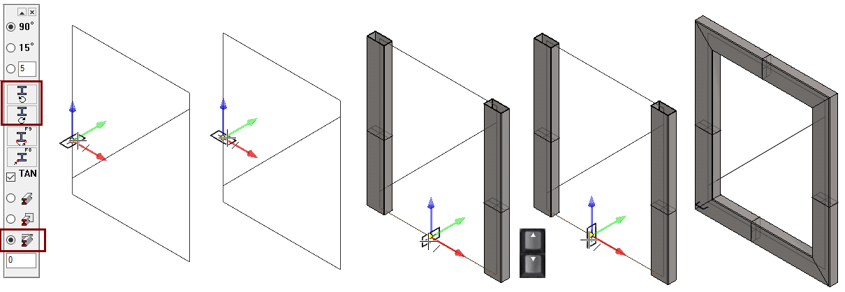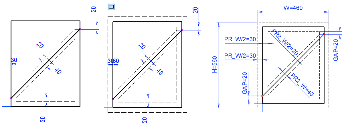 Drawing the auxiliary geometry of the sketch so that the desired welding gap is left in the corners of the diagonal support perimeter.