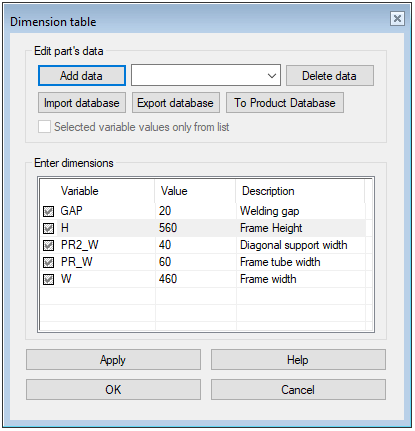 Note that the values PR_W and PR2_W related to the profile cross-section dimensions should not be changed unless the profile sizes are changed separately.