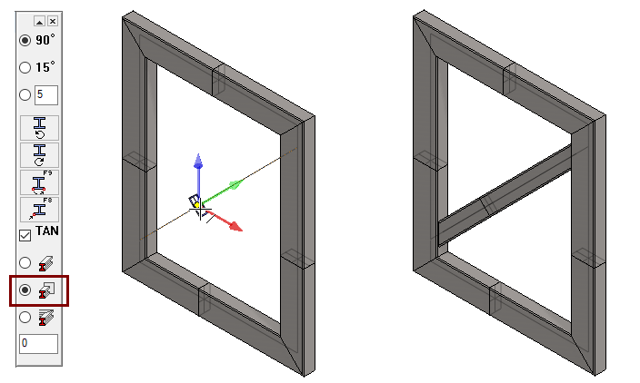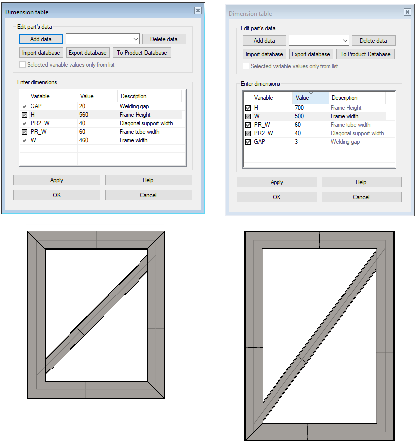 Note that the size of the frame changes immediately, and the model does not need to be solved separately, as in the first exercise, where the dimension was changed by modifying the control curve part from the sketch.