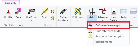 Tab Assembly > Select a function Define reference grid from the ribbon.