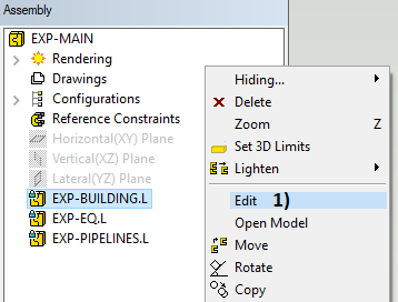 Context-sensitive function: Edit or double-click the sub-assembly from the assembly tree, in picture 1).