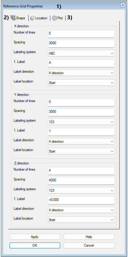 Tab Shape > Define number of lines, spacing, labeling system, label direction and location, in picture2).