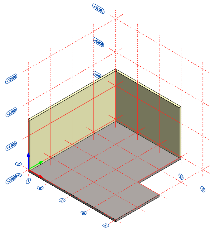 Place the wall element to assembly's origin. Be sure that the element is on top of the floor, like in the picture on the right.