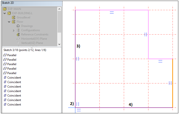 Select the building model (EXP-BUILDING) from the assembly tree.