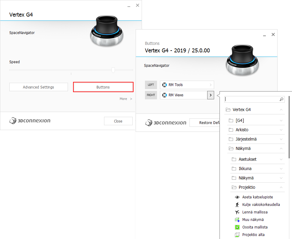 Restart Vertex after installing the 3Dconnection controller.