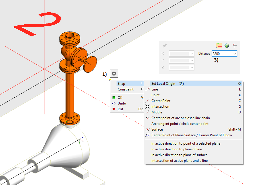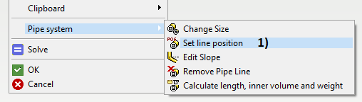 Context-sensitive function: Pipe system > Set line position, in picture 1).