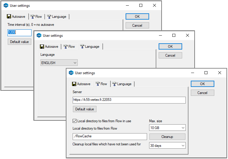 File > User Preferences > Language, Autosave, Flow.