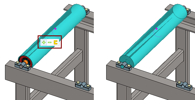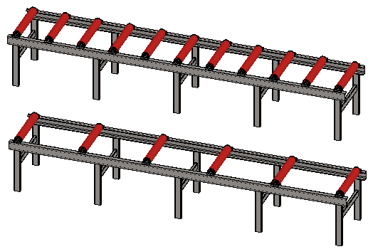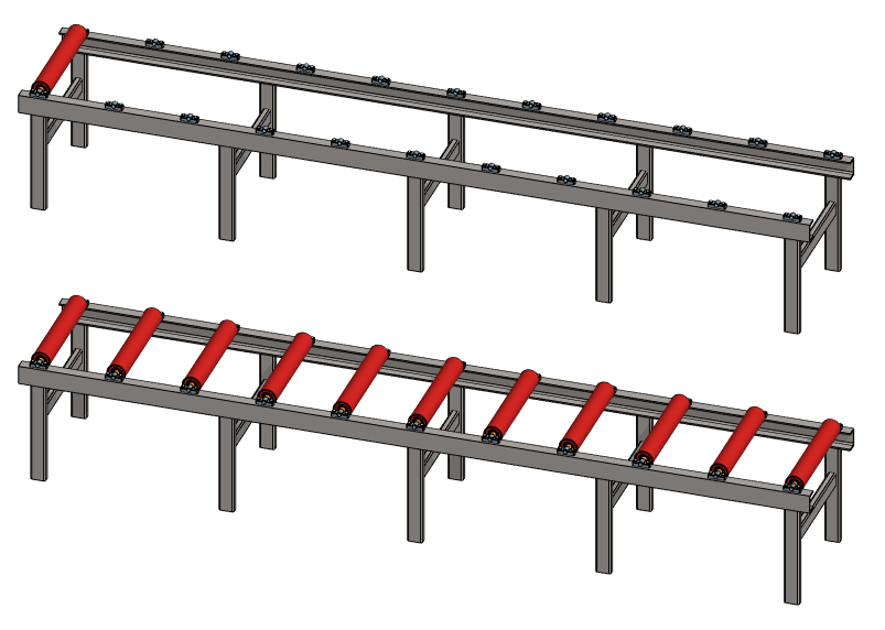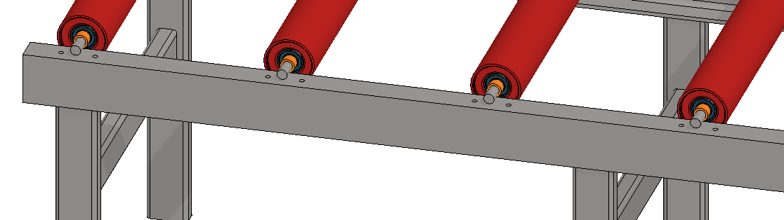 An alternative way to handle the replacement of the locking pieces into bearing brackets and the bearing roller into a fixed roller could be to remove both the existing rollers and locking pieces and first add the bearing bracket as a pattern and then a new conveyor roller as a pattern.