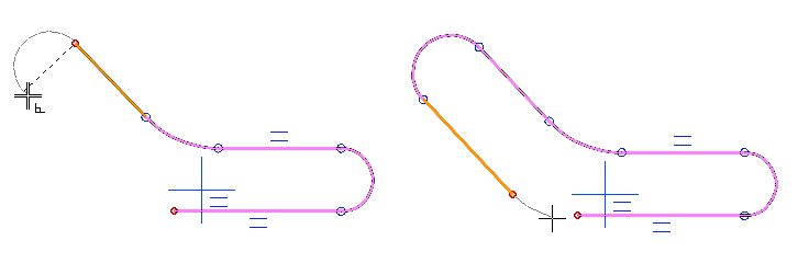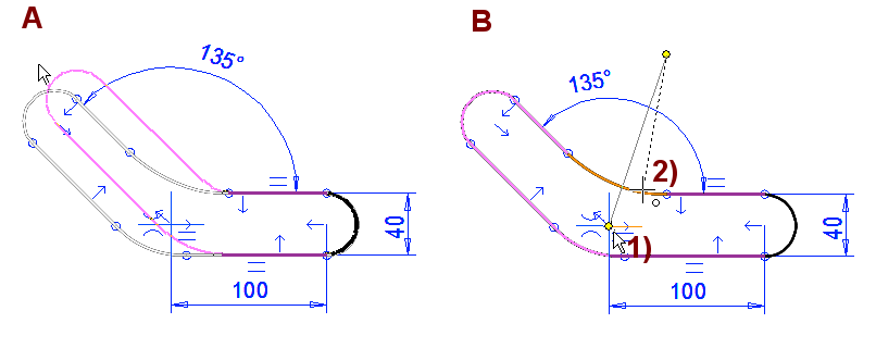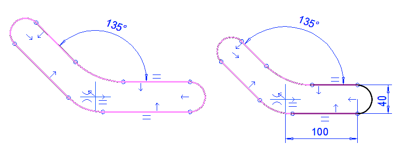 As explained in previous exercises, the symmetry and angle constraint can also be started by first selecting two lines (the latter with the Ctrl key pressed).