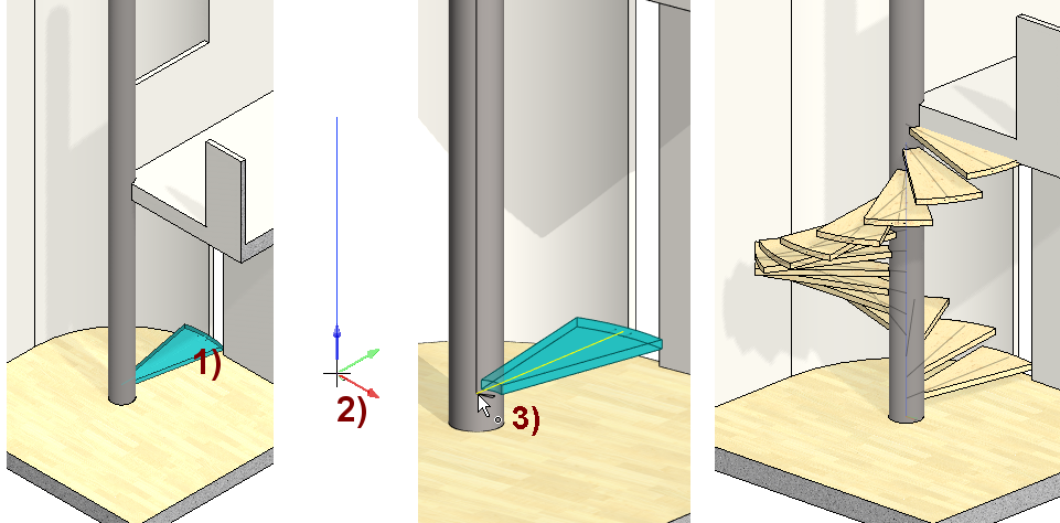 The angle shown at the bottom (Figure 100 and Model 101.25) determines the rotation of the stairs by 260 degrees.