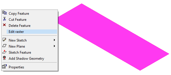 The raster image only appears in the part model and sketch if the auxiliary geometry is visible.