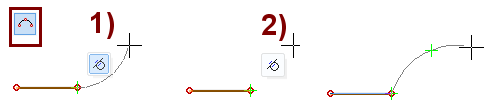 After you have pointed the first point on the line or from the end point of the line, a Mini Toolbar appears that allows you to define the arc drawing for the indicated line tangentially or freely as a three-point arc.