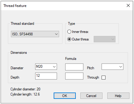 The thread mark appears in the model as a surface texture, but in the model drawing it appears as a thread.