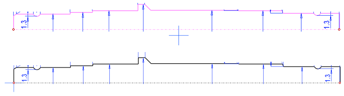 If the cursor is on the other side of the rotation axis, the program suggests a diameter, in the figure 4).