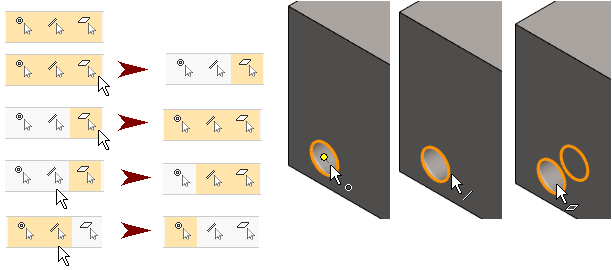 = The Verify distancein part mode, sketching and assembly mode, opens a sub-menu with four functions starting from the left: