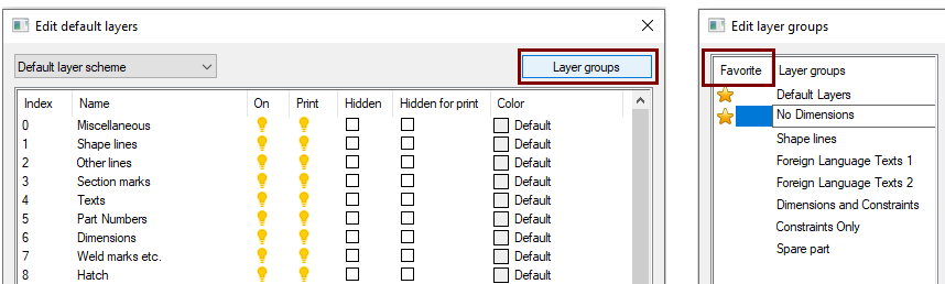 If favorite layer systems are defined, you can select them from the menu opened by Favorite Layer Groups.